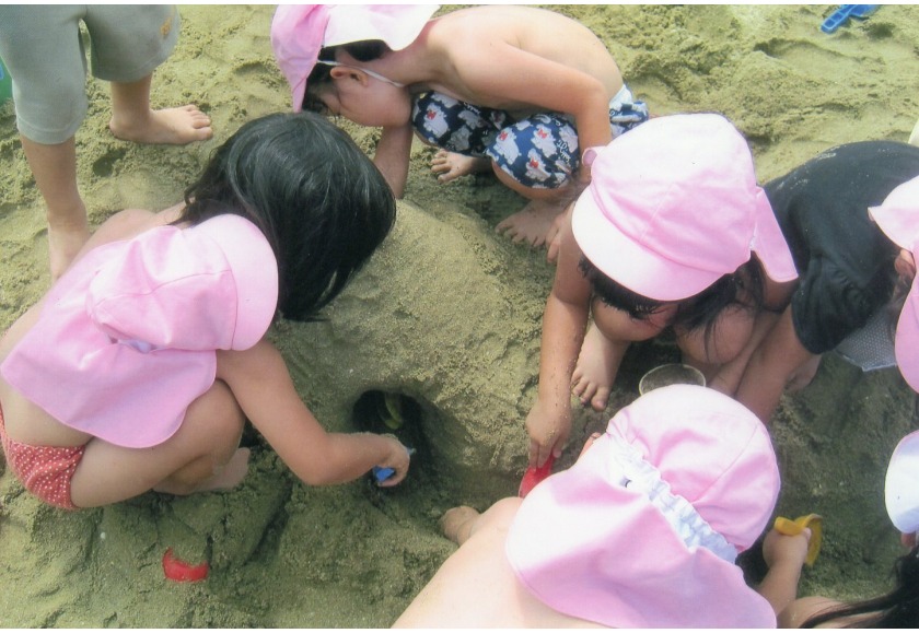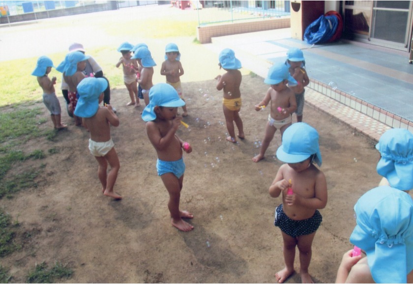 *保育者と一緒に夏の自然に触れたり、個々に合わせてせたダイナミックな遊びを楽しむ。