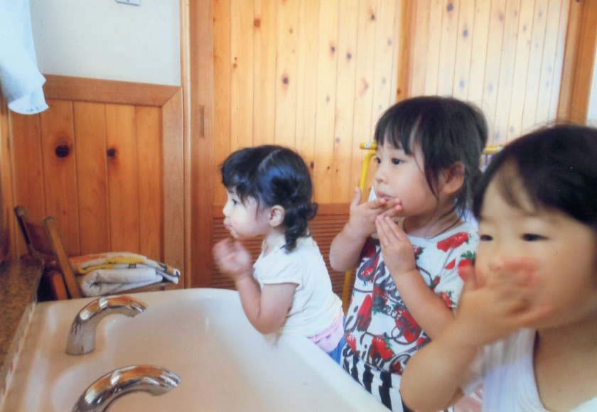 0~1歳の頃は、ものをつかめるようになると口に持っていき、なめることで、その物を確かめようとします。この行為は子どもの感覚を発達させ知能をのばすために大切なことです。でも、油断をすると危険にもつながるので子ども達から目を離さないように気をつけたり、手が届くところに危険な物や細かいものを置かないようにしましょう。