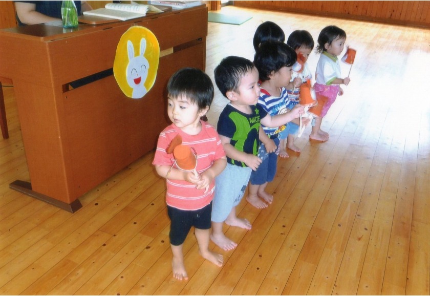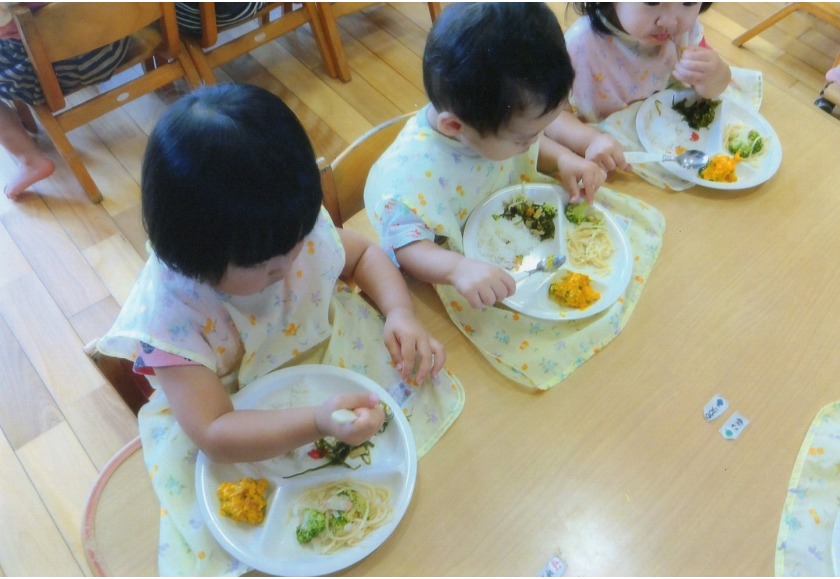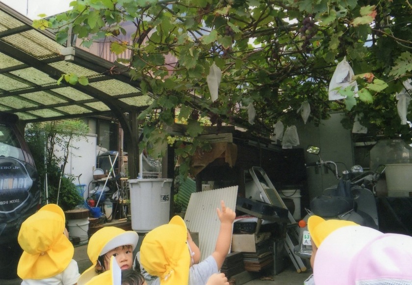 気候がよくなり、散歩に出かけました。低月齢児の子はカートに乗って保育者に声をかけてもらったり、景色を見ながら散歩の雰囲気を楽しみました。歩行が少しずつ安定してきた高月齢児の子は、始めて誘導ロープを使っての散歩に挑戦しました。保育者の励ましや歩けるようになった嬉しさもあったようで頑張って歩いていました。歩けるようになると、探索範囲が広がり、より一層探索活動が盛んになります。興味がある物を見つけると指さしをしたり、「あーあー」と見つけたことを保育者に一生懸命伝えようとします。散歩は、脚力をつけるだけではなく子どもの興味を育んだり、発語を促したりします。気候がよいこの季節、ご家庭でもお子様と一緒に秋を探しを楽しんでみませんか。